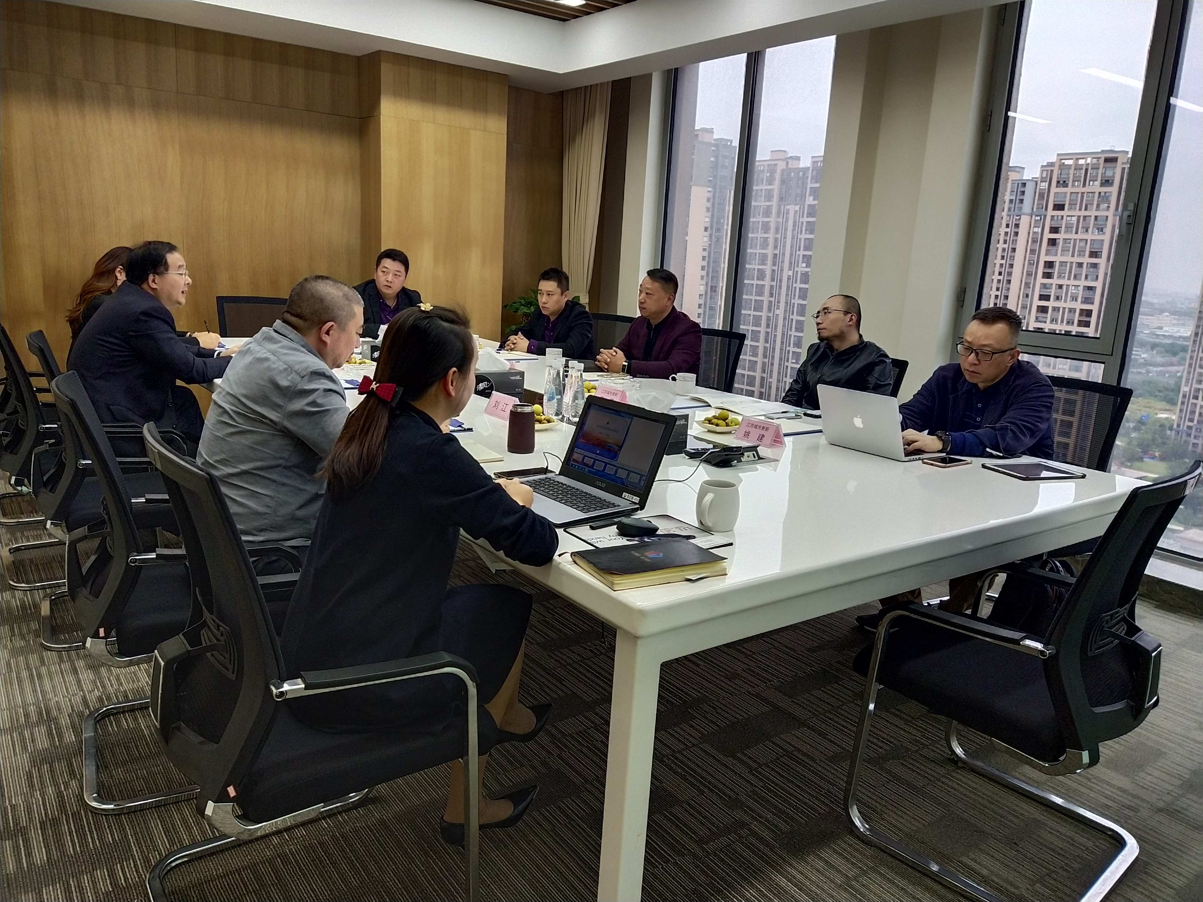 10月15日江苏城市更新产研院秘书长姚健、理事长王冕等一行到我司进行考察调研并召开座谈会。