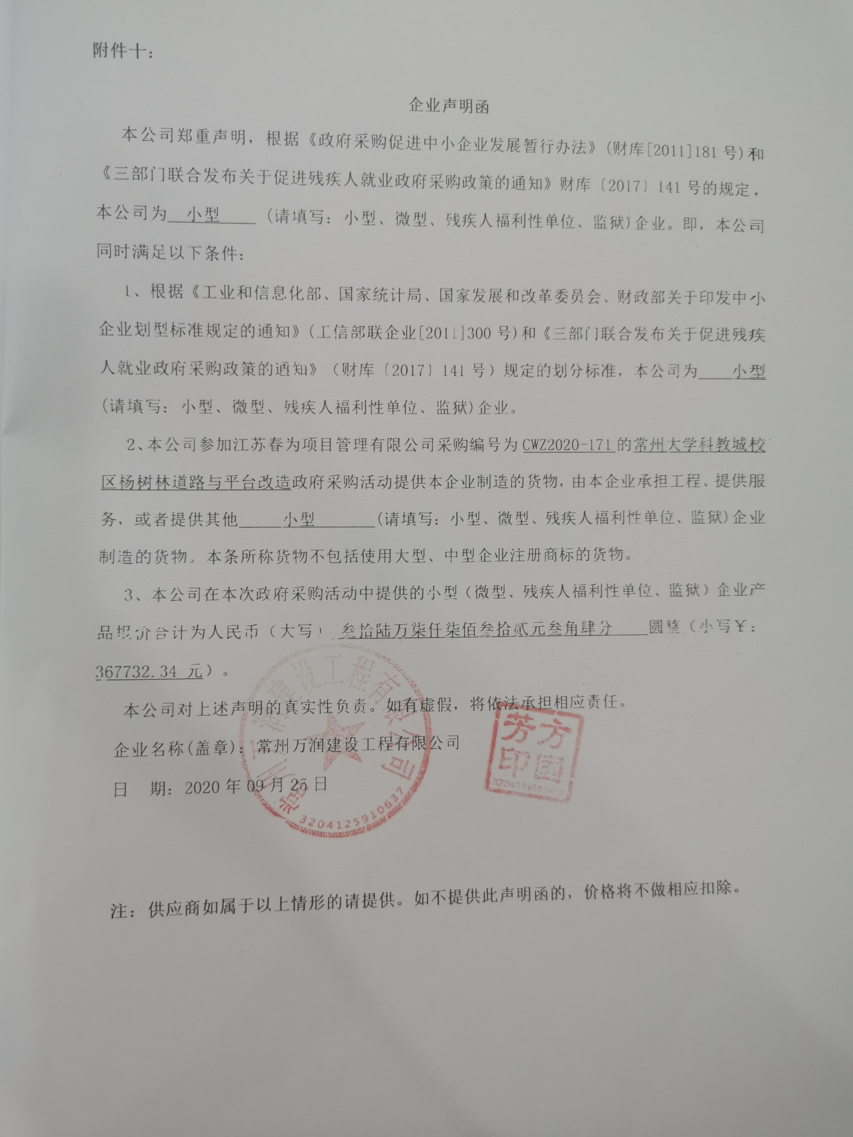 常州大学科教城校区杨树林道路与平台改造中标公告