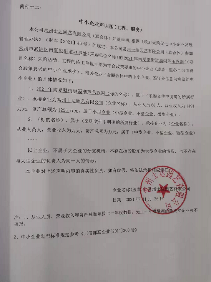 名称:2021年南夏墅街道滆湖芦苇收割 服务范围:南夏墅街道滆湖油车港(含太滆运河入滆湖口)和滨湖公园湿地芦苇收割。 服务要求:收割能按时间和要求完成,芦苇收割面平整,要求割到根部。 服务时间:三年,合同一年一签。 服务标准:满足采购文件相关服务标准。 |