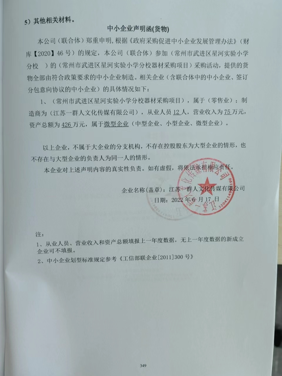 常州市武进区星河实验小学分校器材采购项目中标(成交)结果公告