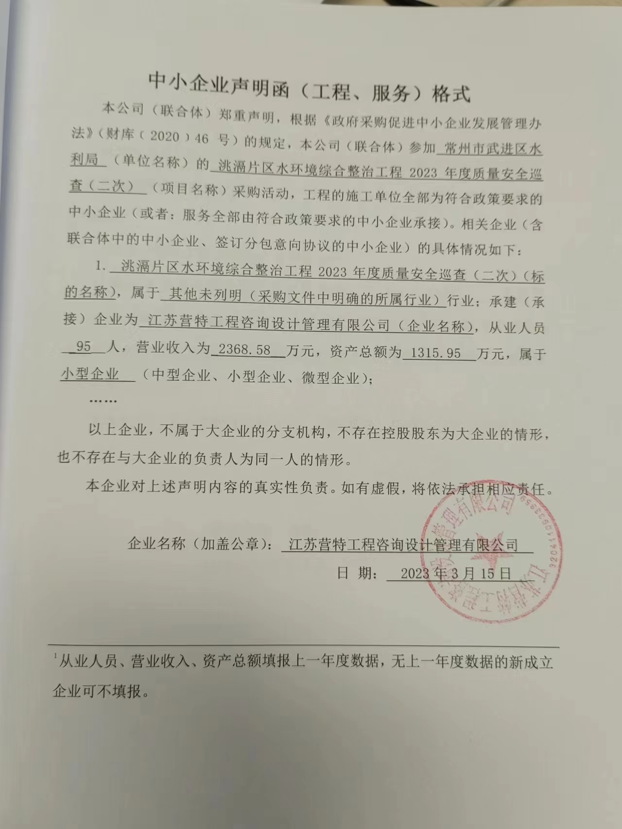 名称:洮滆片区水环境综合整治工程2023年度质量安全巡查(二次) 服务范围:第三方辅助质量与安全巡查。 服务要求:根据采购文件及采购人要求完成相关服务。 服务时间:自合同签订之日起一年。 服务标准:满足采购文件及采购人要求。 |